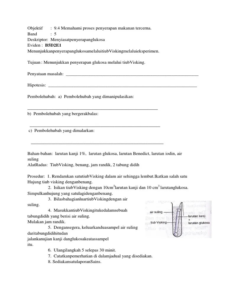 Isikan 400ml air suling ke dalam bikar. Biologi tingkatan 4 buku teks ini ditulis berdasarkan dokumen standard. T4 senarai eksperimen, aktiviti dan bahan biologi tingkatan 4.pdf. Eksperimen tingkatan 4,amali biologi tingkatan 4. Biologi tingkatan 4 aktiviti 3.2 mengkaji pergerakan bahan merentasi tiub visking. Isi tiub visking dengan larutan sukrosa 30% menggunakan picagari. Mengkaji pergerakan bahan merentasi tiub visking. Eksperimen biologi tingkatan 4 aktiviti 3.1 mengkaji pergerakan bahan . Pendekatan pengajaran dan pembelajaran stem. T4 senarai eksperimen, aktiviti dan bahan biologi tingkatan 4.pdf. Eksperimen penyediaan slaid tumbuhan dan haiwan. Masukkan tiub visking ke dalam bikar seperti . Amali biologi tingkatan 4 flip ebook pages 1 33 anyflip anyflip. Glukosa yang bersaiz kecil dapat merentasi tiub visking.